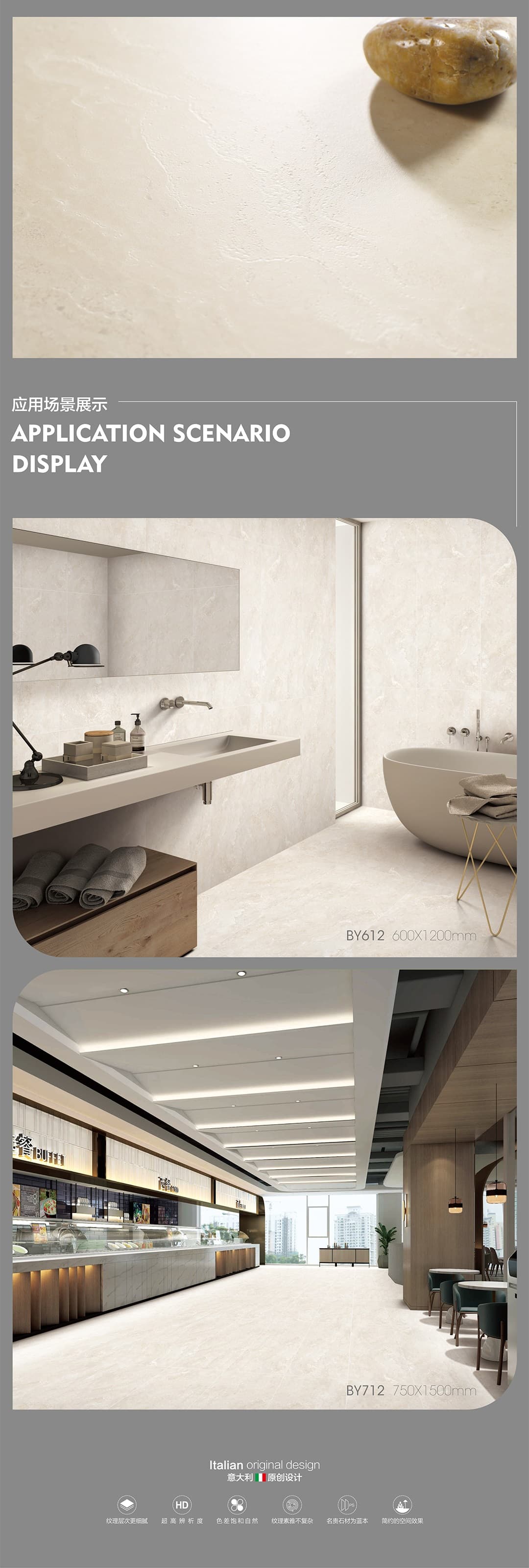 產(chǎn)品特性 表面柔和,防污效果強(qiáng),防滑R10指標(biāo)高,抗折強(qiáng)度好